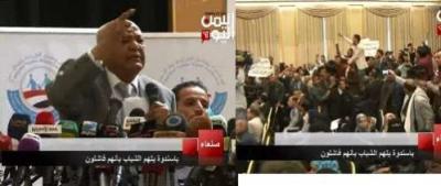 وكان باسندوة قد وصف شباب الثورة المحتجين في القاعة التي أنعقد بها المؤتمر بفندق "موفنبيك" أمس بأنهم بلاطجة ومرتزقة وفاشلون ومأجورون واتهمهم بأنهم مدعومون من الرئيس السابق وخاطبهم بالقول: "كم جابوا لكم فلوس"؟.