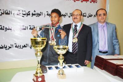 وأشار في كلمته التي ألقاها صباح اليوم في الحفل التكريمي الذي نظمه نادي العروبة الرياضي لأبطال اليمن في لعبة "الووشو كونغ فو" الفائزين بالمركز الأول في البطولة العربية الرابعة للووشو كونغ فو (فئة الشباب) التي احتضنتها دولة الكويت الشقيقة خلال الفترة من 6-11 ديسمبر الجاري 2012م.. ، الى انه يجب مراجعة حسابات وزارة الشباب والرياضة فيما يخص الاتحادات الغير فاعلة والتي لم تتمكن فرقها من الحصول ولو على نقطة واحدها خلال مشاركاتها الدولية الأخيرة .. مشيداً بلاعبي لعبة الكونغ فو الذين مثلوا اليمن خير تمثيل في البطولة العربية الرابعة بدولة الكويت الشقيقة مطالباً وزارة الشباب بتقديم الرعاية والدعم لمثل هؤلاء الأبطال الذين هم جديرين بالتكريم والرعاية خاصة.
