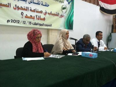 صعدة برس - أكد المشاركين في الحلقة النقاشية الخاصة بـ" دور الشباب في صناعة التحول السياسي" التي نظمها وأقامهتا اللجمة النحضيرية للمؤتمر العام للشباب المستقل اليوم بصنعاء برعاية أمين العاصمة – عبدالقادر علي هلال– على ضرورة أجراء الحوار الوطني الشامل دون قيد أوشرط ،ودون أي أساليب الاقصاء أو التهميش للشباب المستقلين .