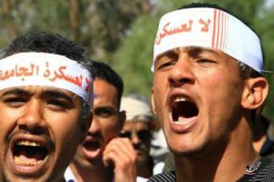صعدة برس-وكالات - انطلقت اليوم في جامعة صنعاء مسيرات طلابية مناهضة لتواجد جنود من قوات الفرقة الأولى مدرع، التي كان يقودها سابقا اللواء علي محسن الأحمر، قبل صدور قرار رئاسي عشية الخميس الفائت بإلغاء تشكيلة قوات الفرقة.