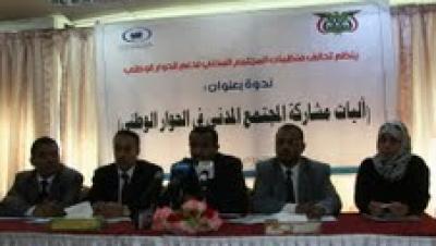 اقام تحالف منظمات المجتمع المدني لدعم الحوار الوطني يوم الاثنين بفندق كمفورت بصنعاء ندوة بعنوان " آليات مشاركة المجتمع المدني في الحوار الوطني" بمشاركة ما يزيد عن 90 منظمة من منظمات المجتمع المدني من مختلف أنحاء الجمهورية.